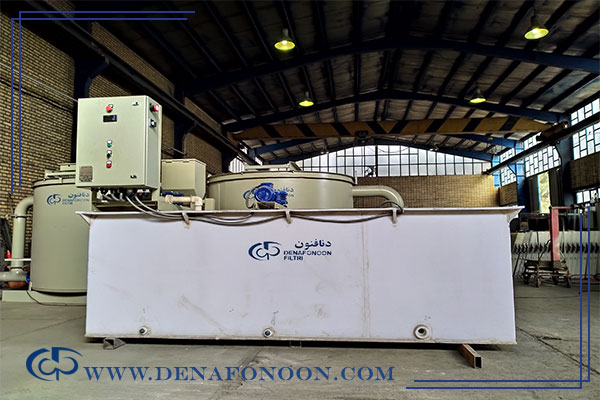 It is worth noting that the water inlet size of large-scale flocculant preparation tanks is significantly larger, allowing for a higher volume of water and flocculant powder mixture, The large-scale flocculant preparation and dosing unit, designed and manufactured by DenaFonoon Company clearly demonstrates the increased size of the tank, which can be easily recognized.